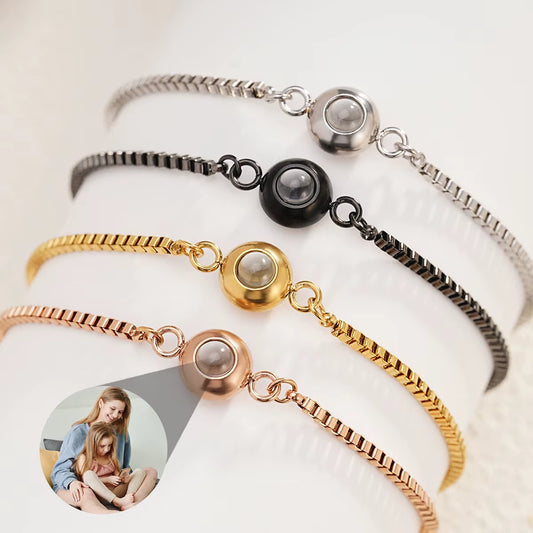 Custom Photo Bracelet Stainless Steel Box Chain Projection Bracelets with Picture inside 100 Languages Projection Bracelet