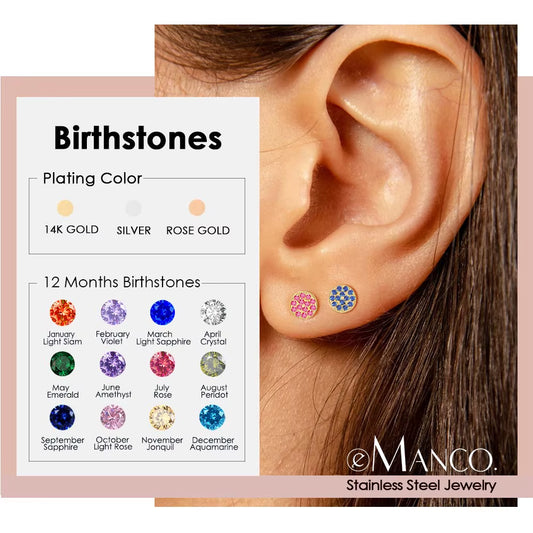 Emanco New Birthstone Pierced Earrings Zirconia Earrings Stainless Steel Jewelry Birthday Gift