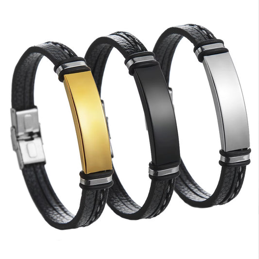 Stijlvolle Heren Armband van Leer en Roestvrij Staal – Met Gravure Optie
