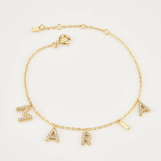 UitverkochtGouden Letterarmband met Stralende Zirkonia